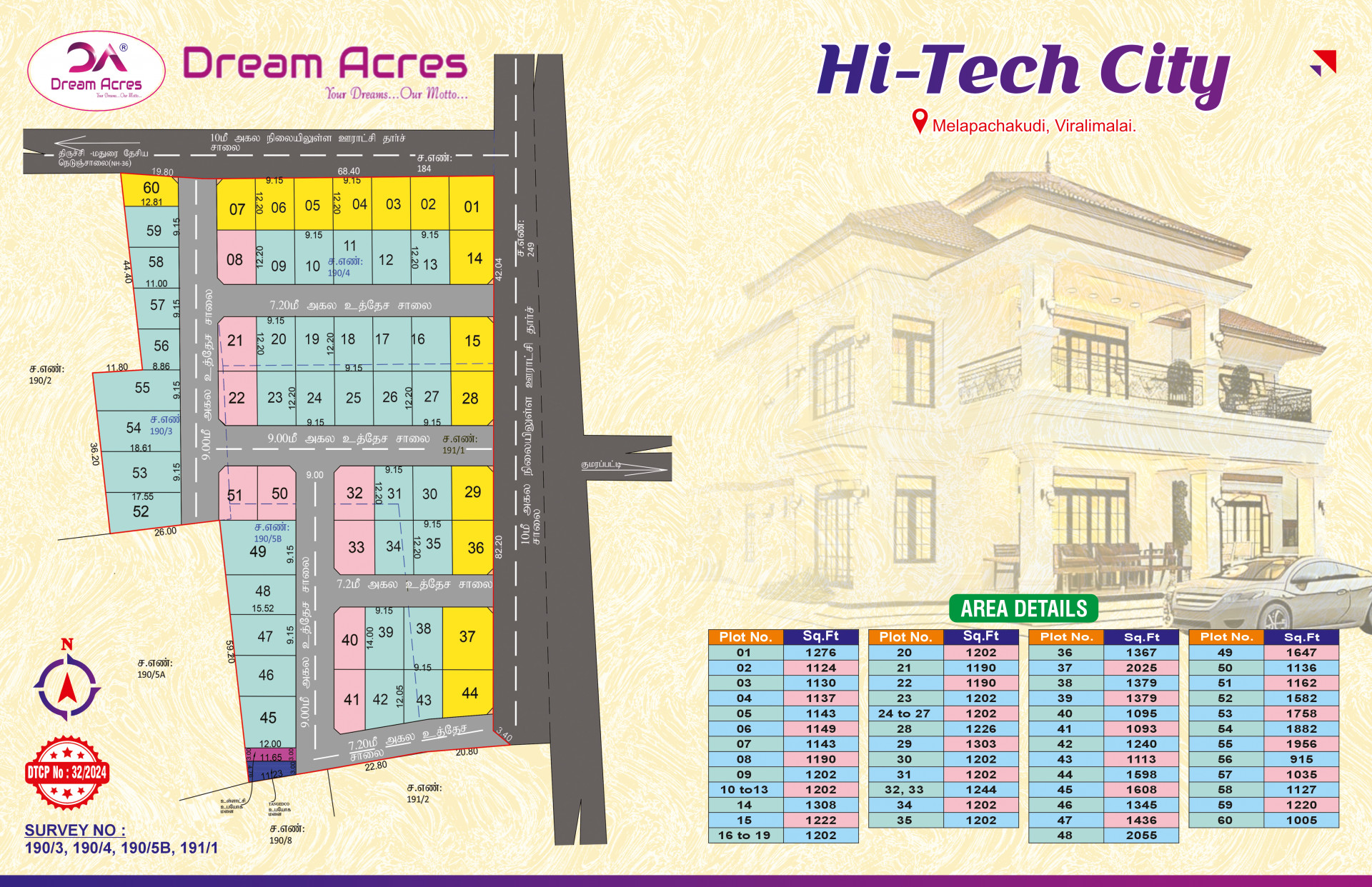 Hi-Tech City layout is located at Melapachakudi, Viralimalai. It is DTCP and RERA approved, with financing options available. It is well-connected with nearby facilities such as the , and several other excellent amenities.