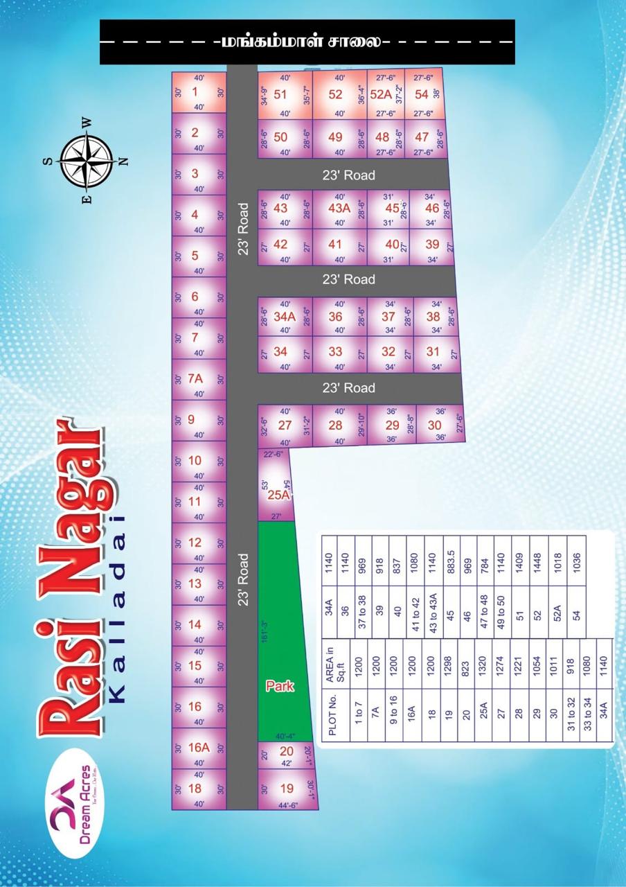 Rasi Nagar layout is located at Kalladai. It is DTCP and RERA approved, with financing options available. It is well-connected with nearby facilities such as the Hospital, , and several other excellent amenities.